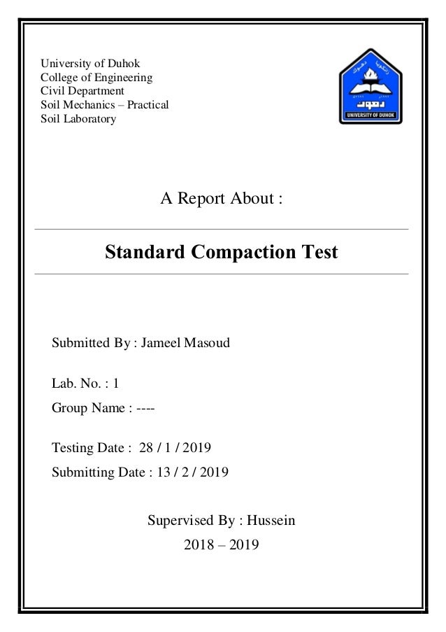 . CIVIL ENGINEERING DEPARTMENT CE206 - INTRODUCTION TO SOIL MECHANICS LABORATORY II PROCTOR COMPACTION TEST Mulhem Şerafeddin 191503618 Submitted to. Add to wishlist Delete from wishlist. Sieve it through 20mm and 47mm sieve.